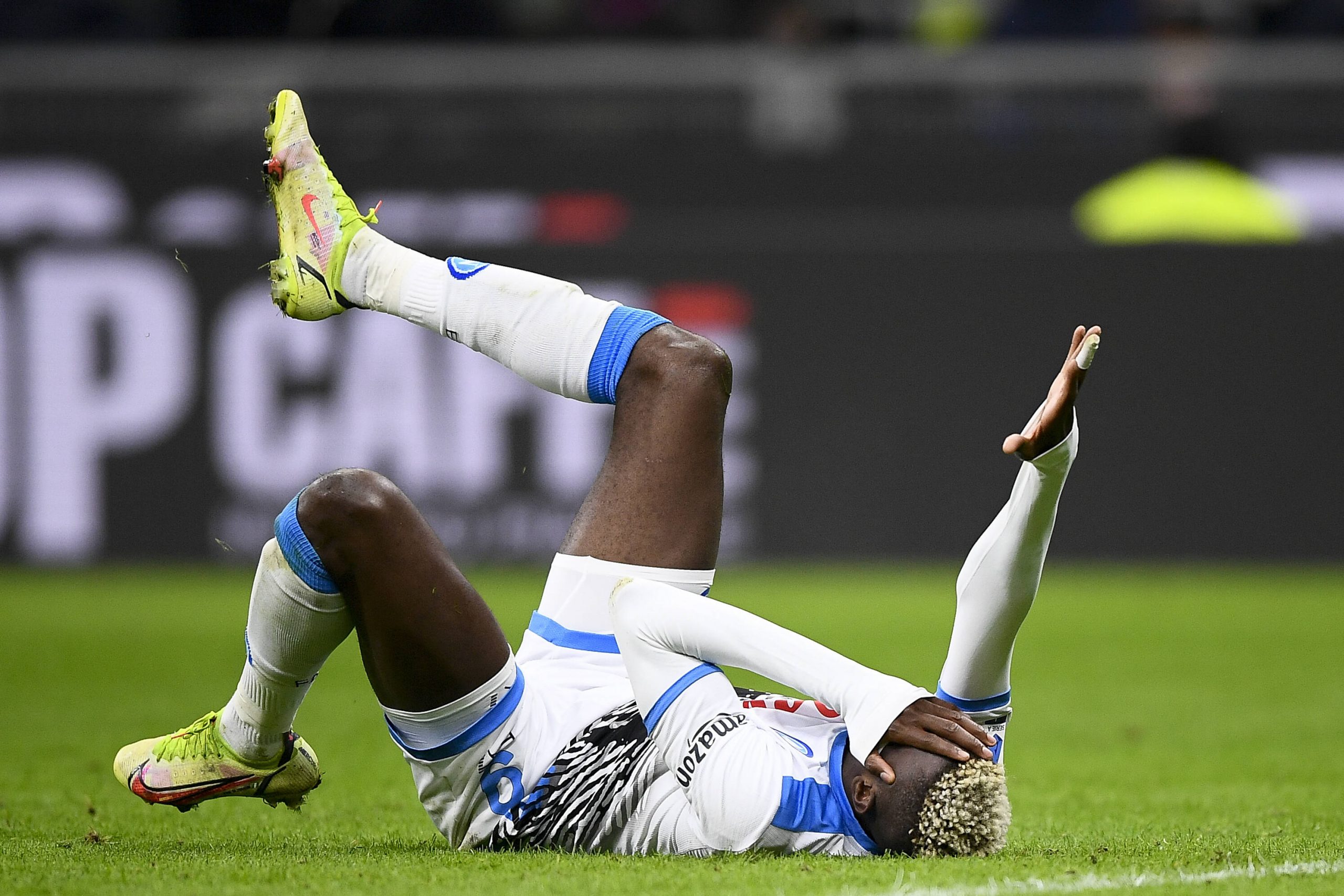 Do trčenja med Osimhenom in Škriniarjem je prišlo na začetku drugega polčasa, Nigerijec pa je s pomočjo zdravniškega osebja na nogah, a vidno pretresen, zapustil zelenico San Sira.