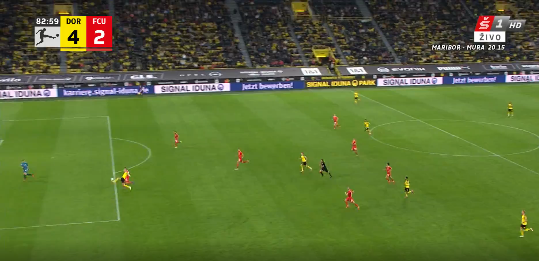 Dortmundska Borussia se je z zmago zavihtela na tretje mesto lestvice elitnega nemškega tekmovanja. Na domačem stadionu je v nedeljo sprva povedla prek Raphaela Guerreira, že v prvem polčasu pa je prednost povišal Erling Haaland. Na 3-0 je rezultat z avtogolom povišal Marvin Friedrich. A gostom je uspel povratek v tekmo. V 57. minuti je gol z enajstih metrov dosegel Max Kruse, v 81. pa je zadel Andreas Voglsammer. A že dve minuti zatem je na svojevrsten način obračun z drugim golom večera odločil Haaland. Ta je še enkrat več pokazal svoj izjemen občutek za žogo in odprtih ust pustil številne navijače Dortmunda.